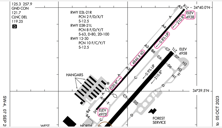 Let’s go through an airport diagram to understand the elements and application of the information. For this lesson, let’s use Prescott Regional Airport as an example.